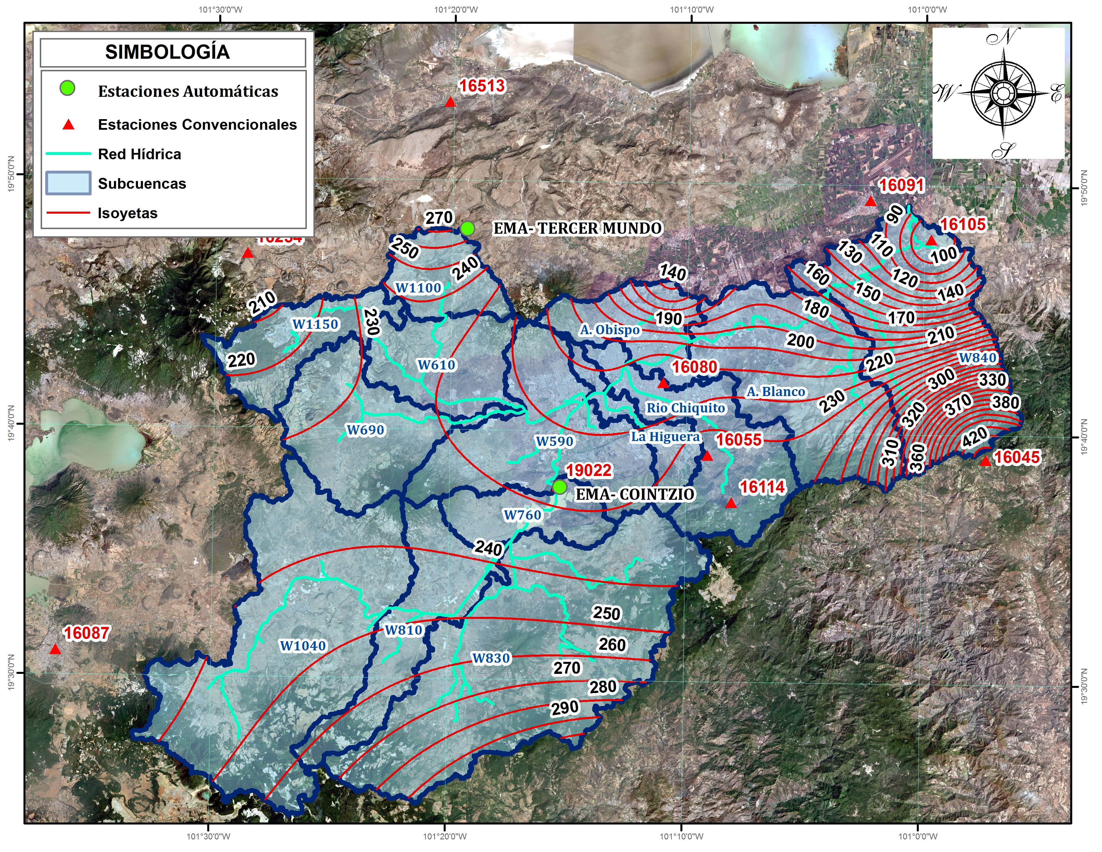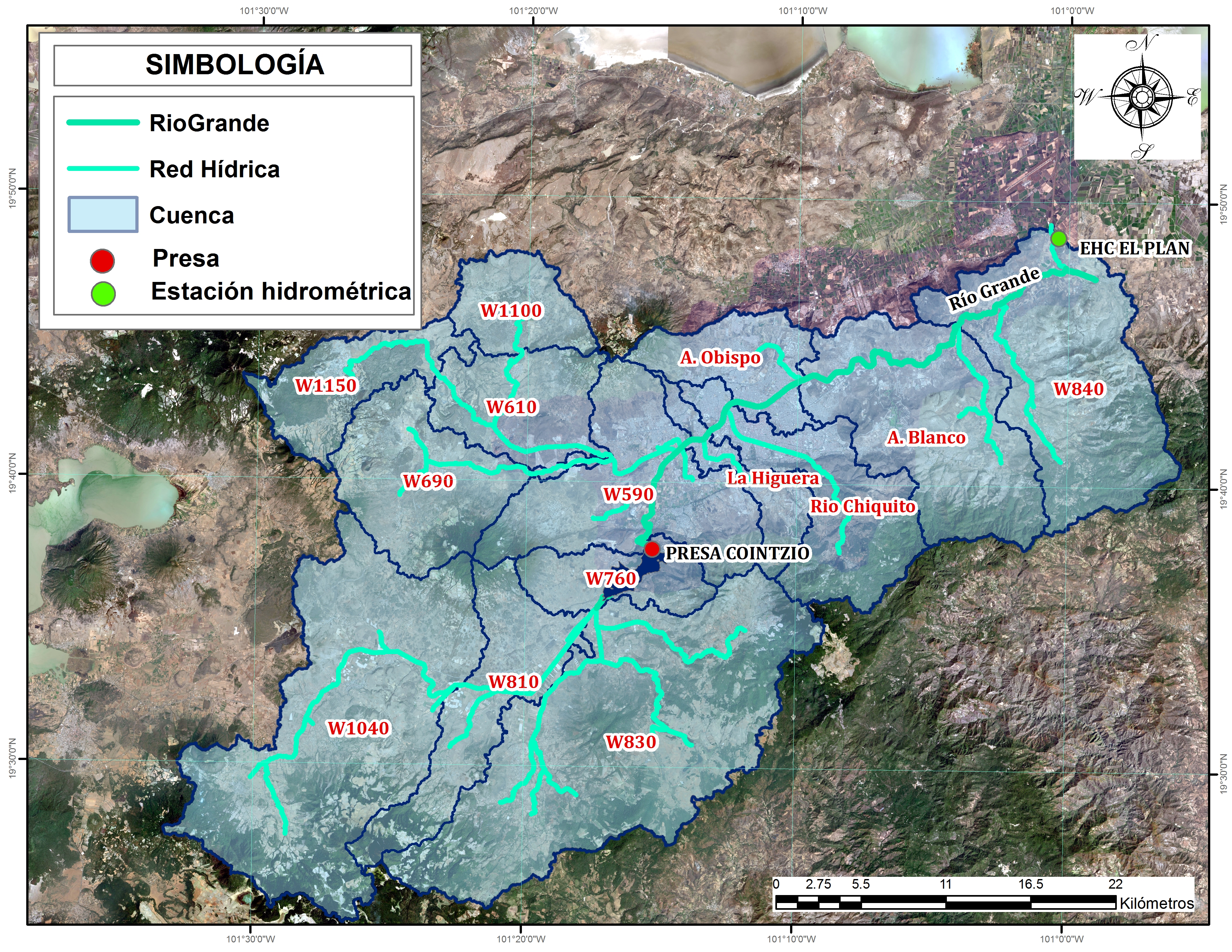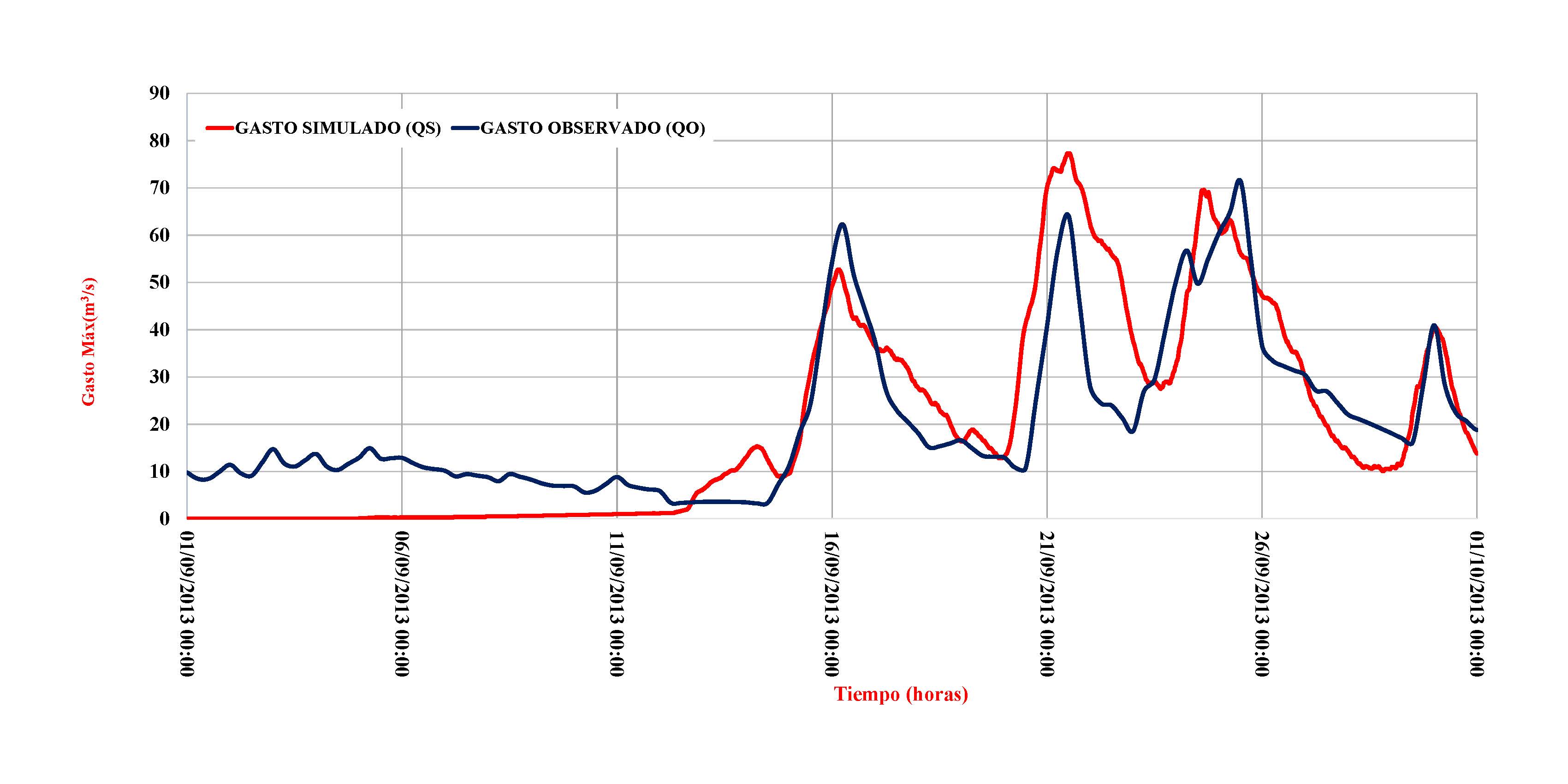 La modelación hidrológica se realizó con HEC-HMS, considerando las características de las subcuencas como área, tiempo de retraso y valores de curvas de escurrimientos. Las precipitaciones se incorporaron mediante hietogramas para septiembre de 2013. Se calibró el modelo, tomando como base un hidrograma aforado a la salida de la cuenca y adecuando valores de curva número de escurrimientos hasta tener un ajuste aceptable entre el hidrograma calculado por el modelo y el aforado a la salida de la cuenca; el ajuste se evaluó mediante los criterios de Nash-Sutcliffe, RMSE y el coeficiente de determinación.